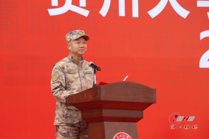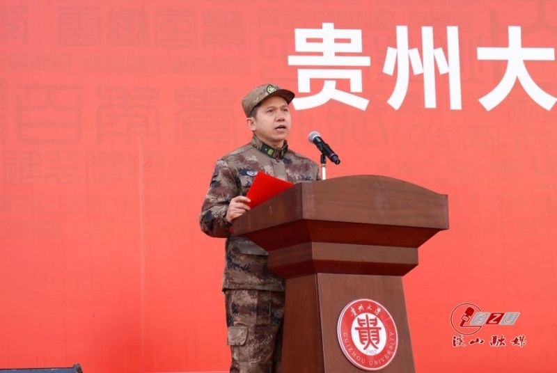 贵州省军区动员局副局长、省征兵办公室副主任邓小瑾大校讲话。他首先对即将离开校园,踏上军旅征途的贵州大学新战友表示热烈的祝贺,对支持国防建设的新兵家长、老师们表示崇高的敬意。他希望入伍学生们能在部队里燃烧火热的激情,不畏艰险、奋力拼搏、敢于争先,充分展现贵州青年的卓越风采,为实现中华民族伟大复兴的中国梦、强军梦书写绚丽的贵州篇章。