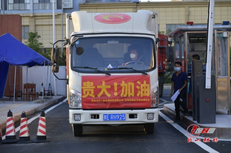 ——“感恩帮扶,同心抗疫”。9月7日晚,贞丰县向贵州大学捐赠茄子、黄瓜、辣椒、土豆、矿泉水等近26吨抗疫物资。