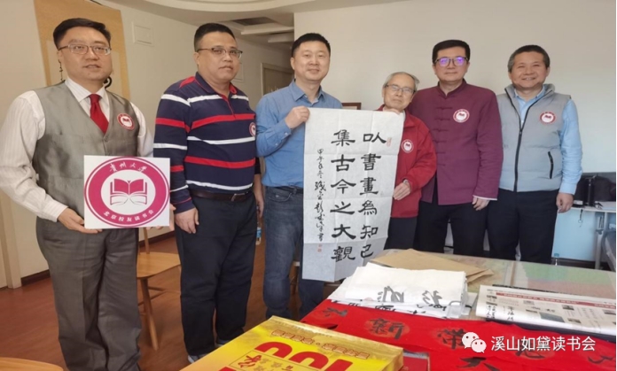 在彭老家中,老人家不吝赐教,不仅对读书会给予高度肯定,而且专业地点评上午的春联作品,还特意留下一幅准备贴在家门口,更是为校友们分享了书法与电影影评之艺术大餐。