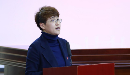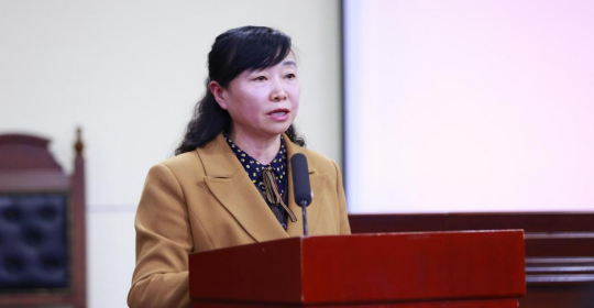 法学院院长、法学院校友分会第一届理事会会长冷传莉作第一届理事会工作报告。