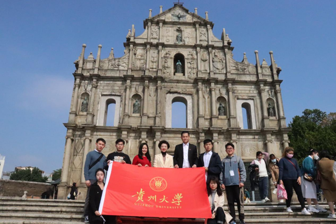 校旗飘扬四海,共迎贵大百廿!2022年1月16日上午,贵州大学“百廿贵大 赓续华章”建校120周年校旗全球接力传递活动到达中国澳门。贵州大学珠澳校友联络负责人校友马志忠先生、校友雷丹女士以及“贵州大学——澳门科技大学金融与数统专题”研学项目全体同学在大三巴牌坊前开展了贵州大学校旗传递澳门站活动,共同为母校送上120周年生日祝福。