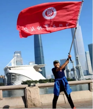 校友们统一穿着印有贵大校徽的服装,护送校旗沿着美丽的珠江湾畔绿道步行至星海音乐厅,迎着朝阳,校友们一路上不断挥舞贵州大学校旗,向母校遥贺百廿。
