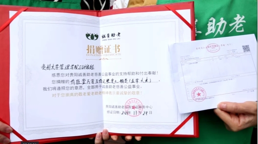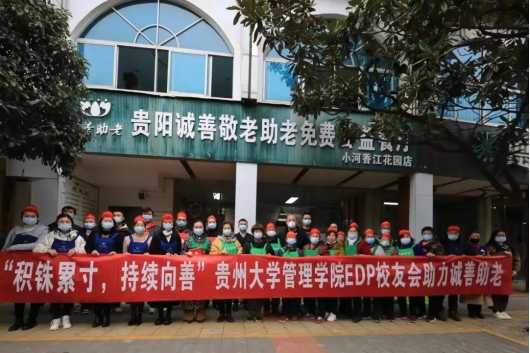 2021年11月29日上午,为加强慈善公益活动,弘扬中华族传统美德,贵州大学校友总会EDP校友分会执行会长高磊、副会长宋曼曼、秘书长朱美诗、执行秘书长秦芹、读书会主席赵宇、副秘书长冯语、财务总监肖敏、贵州星盟友文化发展有限公司董事长龙飞、贵州悦算科技发展有限公司志愿者等一行20余人到贵阳诚善助老慈善公益中心做志愿服务。