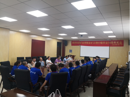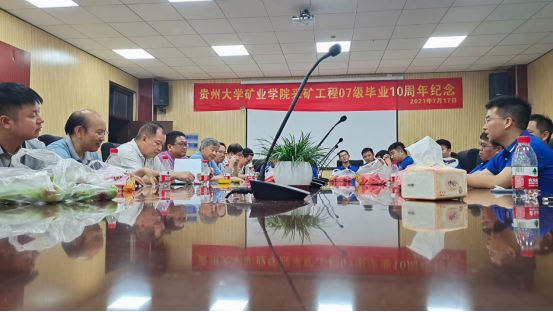 下午,27名校友来到贵州大学新校区矿业学院,和学院的领导以及采矿工程教研室的老师进行座谈,再次聆听老师们的谆谆教诲。矿业学院书记张林、副书记潘棋和七位老师出席了本次活动。刘勇院长因公不能参加,还专程发来贺信,向采矿07级的同学们问好,祝各位同学及家人幸福美满,身体健康,事业有成!并希望在各行各业奋进拼搏的采矿07级同学们,发扬“永远不向困难低头”的矿业精神,在工作上勤勤恳恳,任劳任怨,以诚信待人,干出好成绩!也非常欢迎同学们常回学院看看,关心学院的发展!