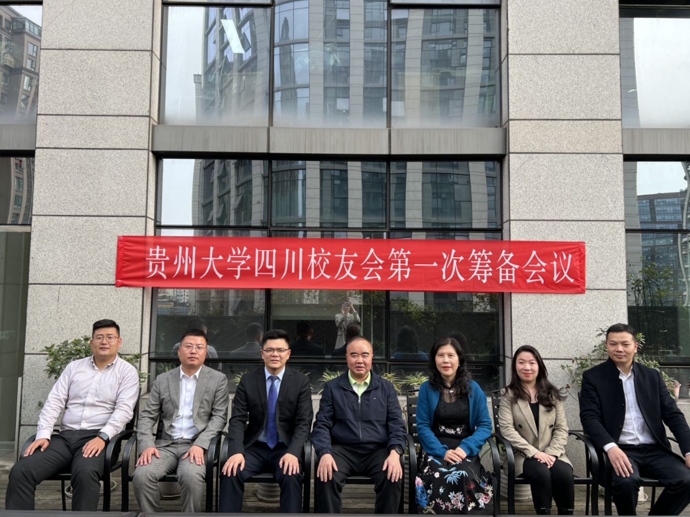 贵州大学四川校友会第一次筹备会合影(从左到右:张勇、钱亮、郭成、陈朝阳、陈敏、詹燕茹、李建军)