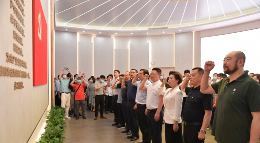 在建党100周年之际,我校代表团还和校友会成员一起参观了中共一大会址和中共一大会址纪念馆,接受党史学习教育。在中共一大会址纪念馆,面对党旗,在李建军领誓下,代表团一起重温了入党誓词。