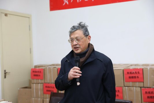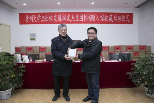 此次,陈祖武先生向贵州大学捐赠257箱近万册书籍,并亲命名为“感恩书屋”。张新民代表陈祖武先生向贵州大学捐赠图书。图书馆馆长张正平代表学校接受捐赠。