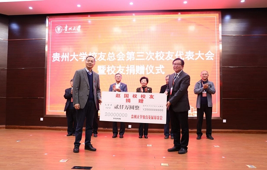 “溪山如黛,常沐春风。学府起黔中……”在悠扬的校歌声中,贵州大学校友总会第三次校友代表大会暨理事会换届大会及校友捐赠与专利转让仪式圆满结束。