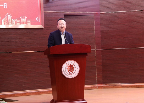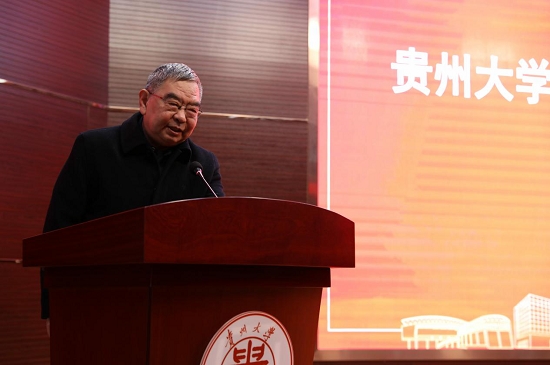 贵州大学杰出校友、中国科学院院士郝小江发言。“我是贵州大学73级毕业的校友,毕业后在贵州大学工作了9年,后来虽然离开贵大,但长期以来在博士点申报、研究生培养等方面助力母校的发展。今后,我将一如既往支持母校的发展。”