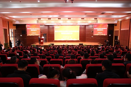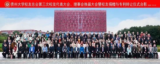 贵大新闻网讯 12月1日上午,贵州大学校友总会第三次校友代表大会、校友总会理事会换届大会暨校友捐赠与专利转让仪式在贤正楼报告厅举行。特邀嘉宾、特邀校友代表、校领导、贵州大学校友总会第三届理事会拟任理事、校友代表、合作企业代表等300余人参加大会