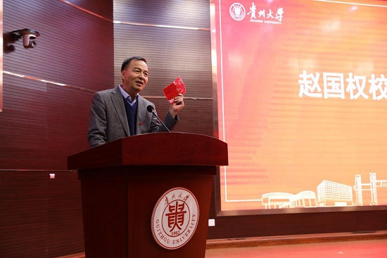陈鸣明讲话。他表示,再次与大家相聚母校,感到非常高兴。近年来,贵州大学综合实力大幅提升,社会影响不断扩大,服务能力显著增强。为了学校持续健康的发展,贵州大学要提高站位,引领贵州高等教育高质量发展,扎根贵州,深度融入国家与区域发展战略,不断提升综合实力和社会影响力。希望各界朋友一如既往关心支持贵州教育事业!希望母校发展取得更大成绩!