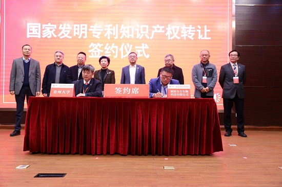 由我校研发的“一种醚化合物在促进植物生长方面的应用”的发明专利以1000万元转让给鹤壁全丰生物科技有限公司,双方将开展包括合成工艺、制剂、应用等相关技术的研发,促进学校科研成果转化。宋宝安与鹤壁全丰生物科技有限公司董事长王志国签订国家发明专利知识产权转让协议。