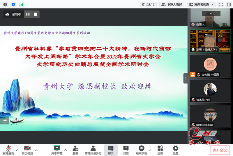 12月16日,由贵州大学与贵州省社会科学界联合会、贵州省史学会联合举办,我校历史与民族文化学院等单位承办的贵州省社科界“学习贯彻党的二十大精神,在新时代西部大开发上闯新路”学术年会暨2022年贵州省史学会史学研究历史回顾与展望全国学术研讨会以线上形式召开。