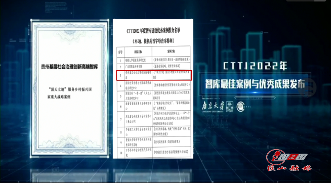 12月17日,在由南京大学、江苏省社科院联合召开的“2022新型智库治理论坛——学习党的二十大精神,提升新型智库咨政服务能力”主题论坛上,公布了2022年中国智库最佳案例与优秀成果榜单。贵州省首批新型特色智库——贵州大学贵州基层社会治理创新高端智库同时荣获“智库最佳案例奖”“优秀成果特等奖”。
