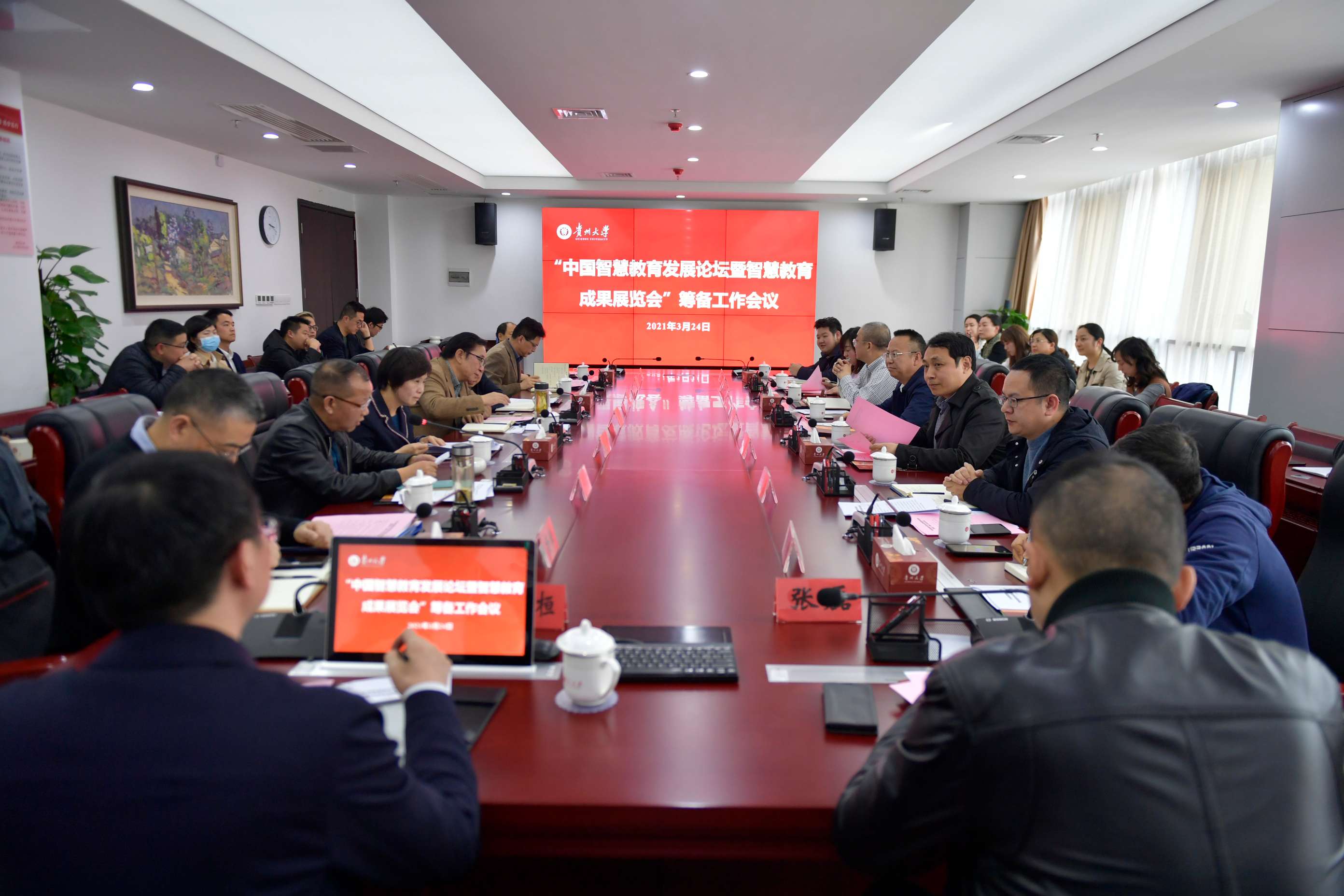 3月24日下午,“中国智慧教育发展论坛暨智慧教育成果展览会”筹备工作会议在我校西校区贤正楼311会议室召开。省教育厅副厅长漆思、中国国际大数据产业博览会执委会罗庚、校领导李建军、李军旗、杨松,承办高校、企业与研究院代表出席会议。会议由我校副校长李军旗主持。