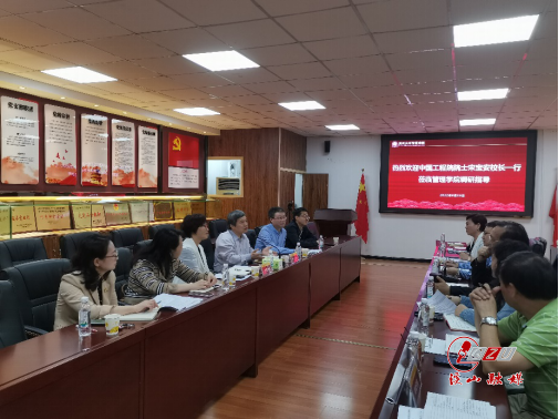 6月13日下午,校长宋宝安院士、校党委副书记令狐彩桃一行在管理学院调研指导教研室建设、博学计划、就业、学科竞赛等工作。教务处、招生就业处相关负责人及管理学院党政领导、各系、科室、中心负责人参加会议。