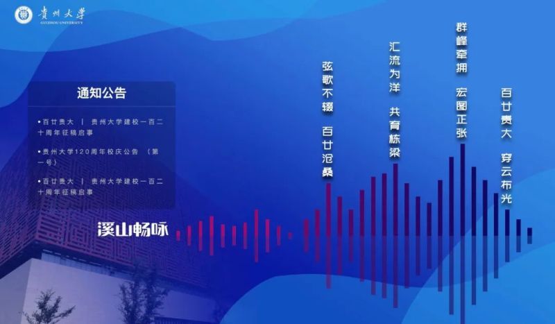 百廿贵大,弦歌不辍;溪山畅咏,续写华章。2022年9月8日,贵州大学将迎来建校一百二十周年华诞。为迎接120周年校庆,7月14日,“百廿贵大 溪山畅咏”专题网正式上线。