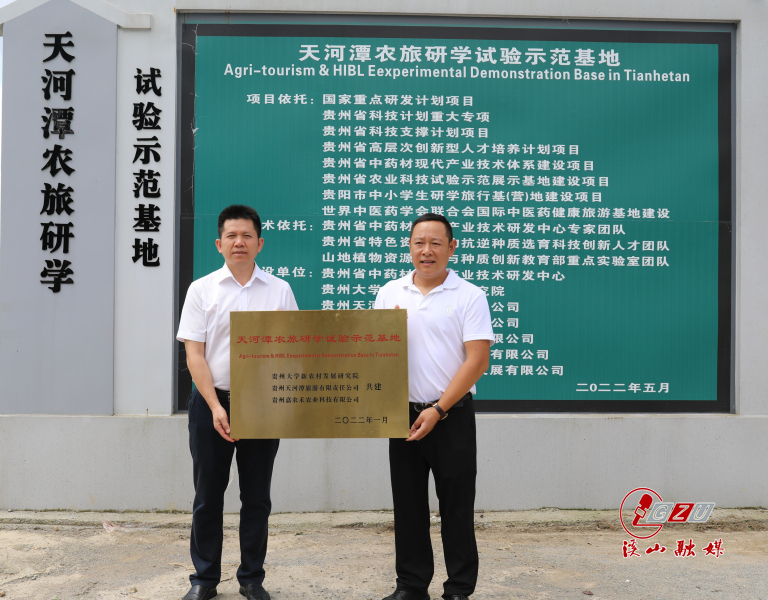 7月13日上午,“天河潭农旅研学试验示范基地”揭牌仪式在天河潭旅游度假区举行。该示范基地由贵州大学与贵州天河潭旅游有限责任公司联合创建,贵州天河潭旅游有限责任公司工会主席吴玉华、纪检委员张东明,我校副校长陈祥盛出席仪式。新农村发展研究院、科技园及相关部门和学院负责人参加仪式。