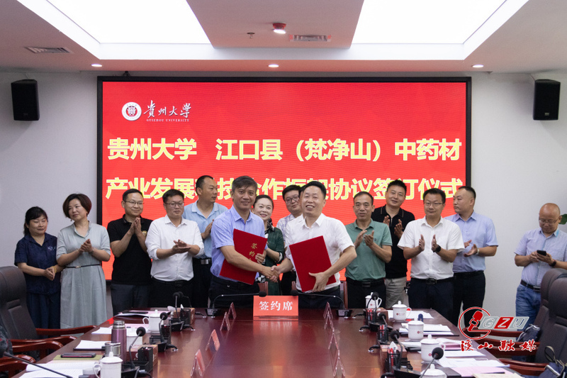 7月13日上午,贵州大学与江口县(梵净山)中药材产业发展科技合作框架协议签订仪式在我校举行。副校长张大林与铜仁市江口县副县长李云签订协议。