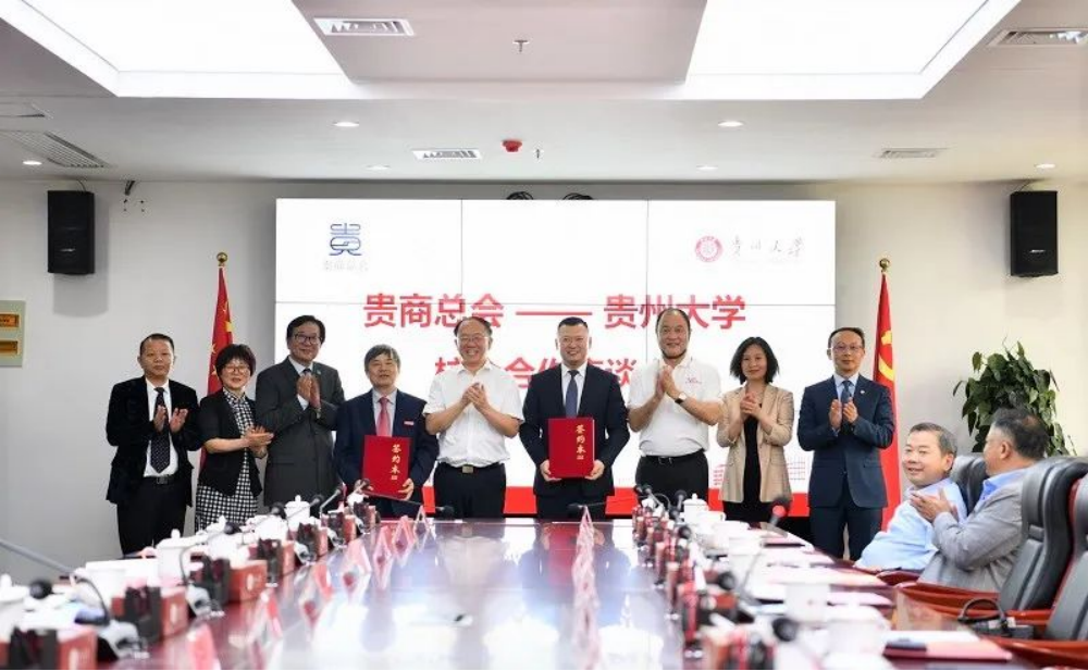 座谈会上,贵商总会与贵州大学签署战略合作协议。未来,贵商总会与贵州大学将在人才培养、学生实习实践与就业、科研等方面开展一系列合作,为促进贵商总会会员企业高质量发展,贵州大学高质量建设作出共同努力。