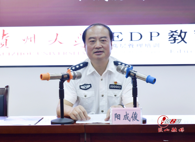 7月25日上午,由贵州省公安厅主办,贵州大学承办的“第一期全省公安调研干部培训班”开班仪式在我校东校区举行。省公安厅党委委员阳成俊,校党委书记李建军、副校长吴攀出席。