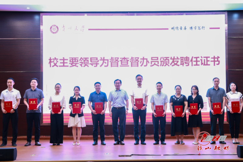 8月19日上午,贵州大学2022年秋季学期工作会议在西校区贤正楼107多功能报告厅举行。会议听取了有关部门对标高质量发展和“双一流”建设目标任务的2022年上半年工作情况、下半年重点工作打算及主要工作措施,汇报了学校120周年校庆工作有关情况,宣读了学校高质量发展督查督办相关文件,颁发了督查督办员聘任证书。