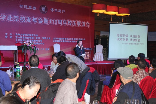 11月24日晚上,贵大北京校友会成功举行贵大110周年校庆联谊会,贵州大学校长郑强先生、宣传部罗勇先生、任康民院长与教育部相关领导出席酒会,参与校友约160位。