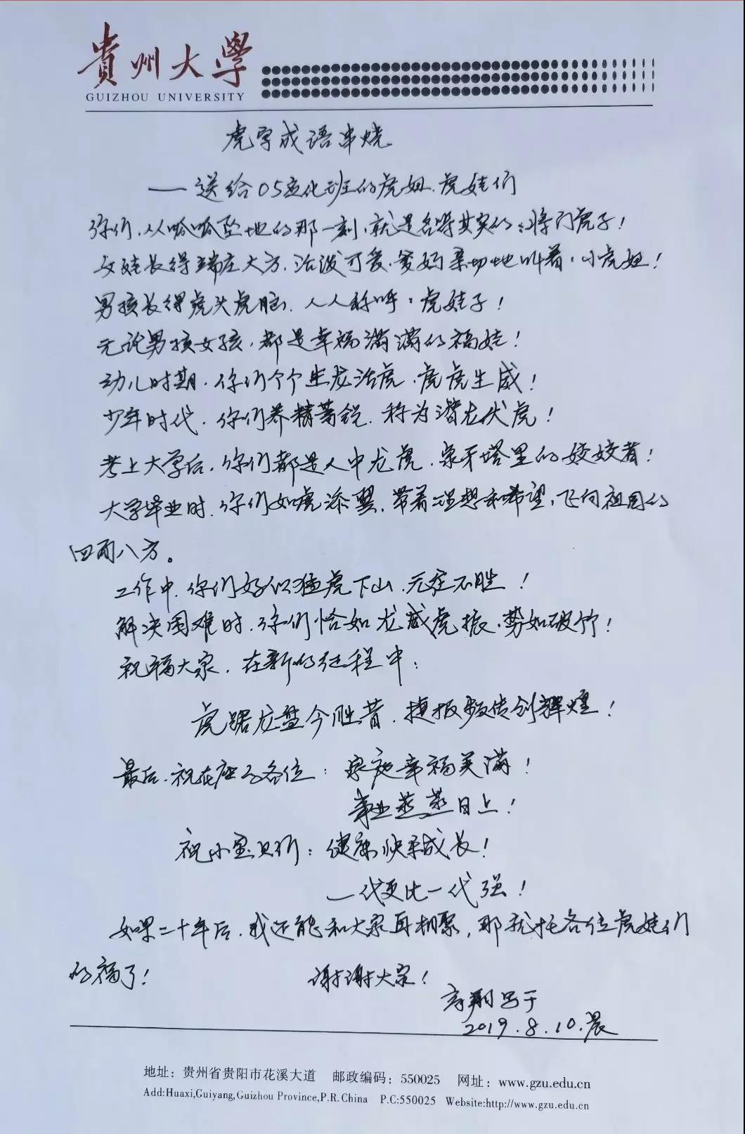 注:“虎”字成语串烧-这是化学系退休教师高翔老师所写,是送给同学们的珍贵礼物,字里行间尽显殷切期盼和满满的祝福。