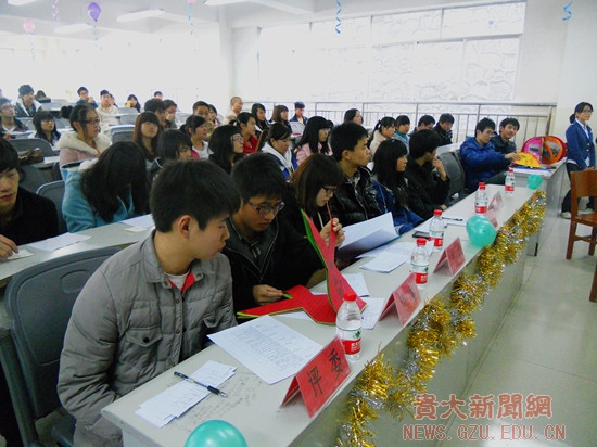同学们怀着喜悦的心情提前来到装饰一新的现场。三点整,主持人宣布活动开始,全体同学起立唱《贵州大学校歌》,共同为母校祝福。