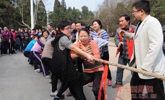 阳春三月,桃李争芳。2013年3月7日下午,贵州大学大礼堂前呐喊助威声此起彼伏,引来许多路人好奇地驻足观望,原来是校工会为庆祝即将到来的三八妇女节而举行的第三届拔河比赛。