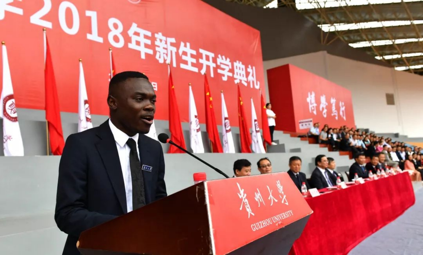 达石作为新生代表在贵州大学2018年开学典礼上发言