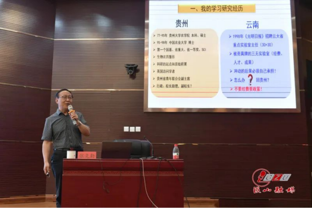 7月4日下午,杰出校友、中国科学院院士、云南大学原副校长、省部共建云南大学生物资源利用与保护国家重点实验室主任张克勤,在西校区贤正楼107报告厅开展“做人·做事·做学问”校园学者系列讲座,主讲“一辈子做好一件事”。