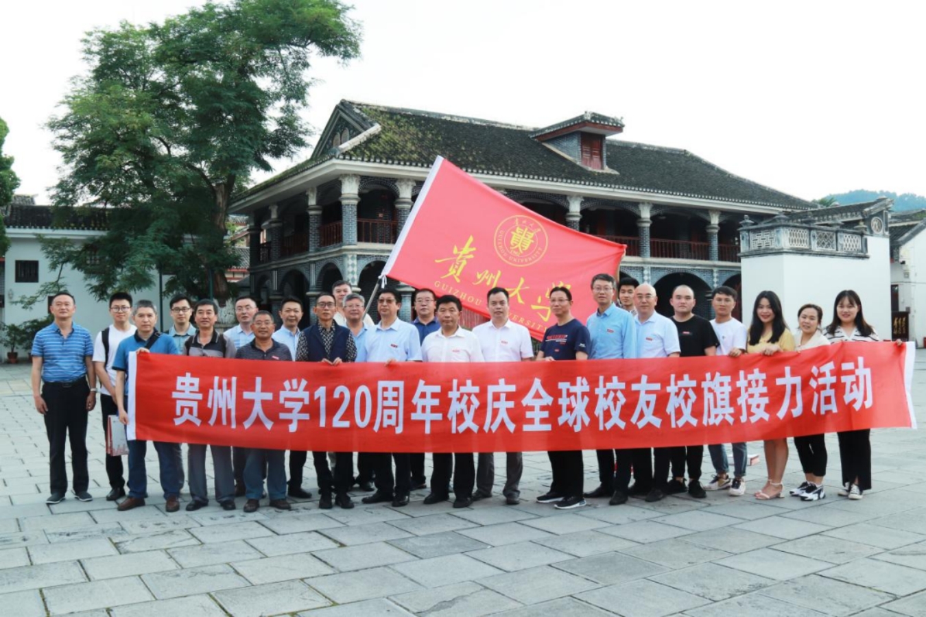 会后,与会人员共同开展了贵州大学建校120周年全球校友校旗接力遵义站传递活动。