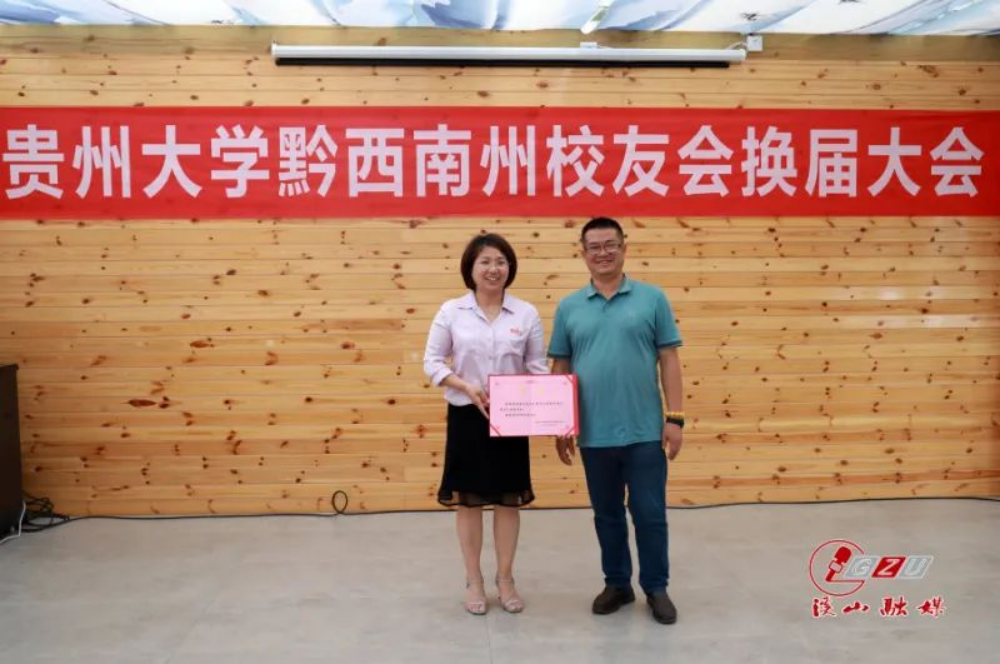 会上,贵州大学黔西南州校友分会换届筹备工作组组长邓克云(黔西南州绿缘动植物科技开发有限公司董事长、88级土化专业校友)汇报了贵州大学黔西南州校友分会换届筹备情况;贵州大学校友总会副会长、农学院党委书记杨刚代表贵州大学校友总会宣读了《关于同意贵州大学黔西南州校友分会换届的批复》;贵州大学黔西南州校友分会换届筹备工作组副组长罗永森(贵州黔城博源企业管理服务有限责任公司、99级信息管理专业校友)宣读了《贵州大学黔西南州校友分会章程》。