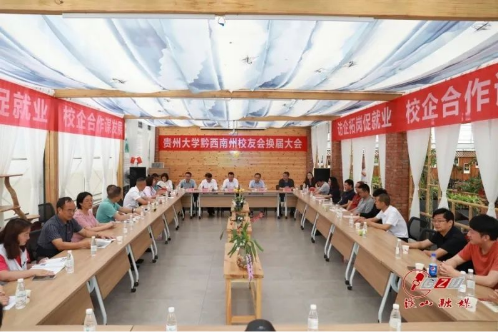 6月23日上午,贵州大学黔西南州校友分会换届大会暨校旗全球接力传递活动在黔西南州兴义市举行。副校长漆思、黔西南州人大副主任黄健勇(贵州大学78级中文系校友)、贵州大学校友总会副会长李烨、杨刚出席会议,贵州大学校友总会、对外合作处、管理学院校友分会、农学院校友分会等有关负责人,贵州大学黔西南州校友分会代表人员参会。