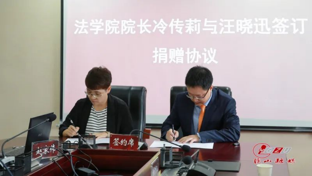 法学院院长冷传莉代表学院接受了捐赠,并与汪晓迅签订捐赠协议。