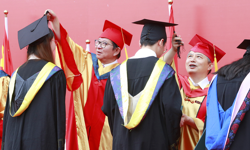 “拜,谢师恩,知山知水,春风化雨;再拜,念师情,树木树人,润物无声;三拜,与师别,渐行渐远,永念师恩。”全体毕业生鞠躬,在向老师们拜别中,再表敬意与感谢。校领导,嘉宾,中国工程院院士、贵州大学空间结构研究中心马克俭教授,以及各学位评定分委员会授位导师为毕业生拨穗。