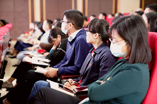 骆长江重点从开展党史学习教育的背景、重大意义、目标要求和工作要求等方面,为听课党员干部、党员代表全面解读了习近平总书记在党史学习教育动员大会上的重要讲话精神,要求大家自觉把思想和行动统一到党中央、省委的部署和省委教育工委、学校党委的安排上来,把开展党史学习教育、“牢记殷切嘱托、忠诚干净担当、喜迎建党百年”专题教育这一当前和今年的重要政治任务落实好、贯彻好。