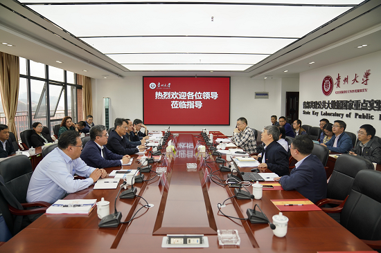 5月20日上午,贵州省政府党组成员郭锡文,省科技厅厅长廖飞,省政府办公厅党组成员、副主任陈勇,省科技厅一级巡视员林浩,省大数据局副局长胡建华及有关部门负责人到我校西校区崇厚楼省部共建公共大数据国家重点实验室(筹)调研并召开座谈会。校党委书记李建军,中国工程院院士、校长宋宝安,副校长杨松出席座谈会。