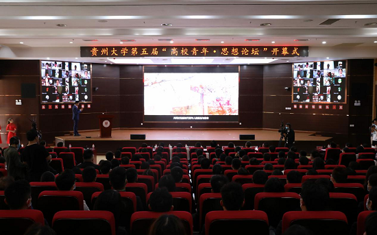 在习近平总书记视察贵州大学10周年之际,5月9日,以“百年立德树人·十年感恩奋进”为主题的贵州大学第五届高校青年·思想论坛在西校区贤正楼107报告厅拉开序幕。省教育厅副厅长漆思,团省委副书记丁毅,校领导李建军、令狐彩桃、杨松、张大林,校党委常委、组织部部长李昕昌,校党委常委、统战部部长卓永等出席开幕式,各职能部门、培养单位党政负责人、学生代表参加会议,各学院、单位师生及百余所国内高校学生代表通过网络连线进行“云论坛”分享。