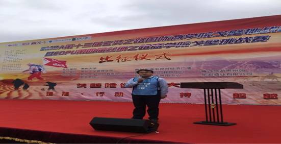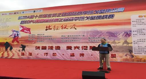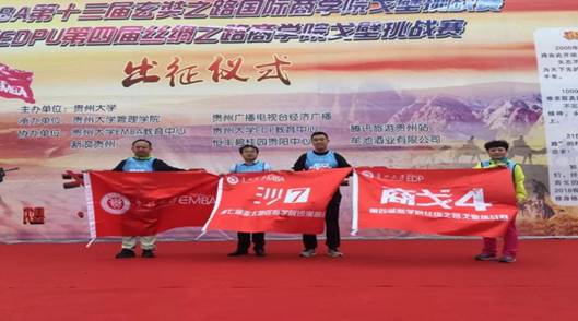 4月15日上午9时,由贵州大学主办,贵州大学管理理学院、贵州广播电视台经济广播共同承办的“EMBA 第十三届玄奘之路路商学院戈壁挑战赛、EDP 第四届商学院丝绸之路路戈壁挑战赛和MBA第七届亚太地区商学院沙漠挑战赛”出征仪式在贵州大学西校区隆隆重举行。贵州大学管理理学院院长李李烨、管理理学院院长助理理、EMBA、EDP中心主任张勇、贵州大学EMBA、MBA、EDP 学员代表,以及新老戈友等100多人共同参与了了此次出征仪式。