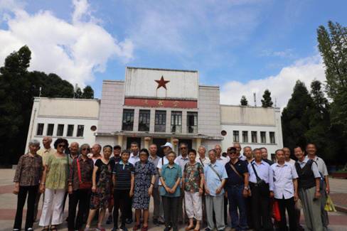走至大礼堂,大家再次合影留念。留影后,大家坐上摆渡车携手环游校园。大家一路上走走停停,指指点点,看着东区和西区恢弘的建筑群,回忆着当年亲自挖地基给学校搞建设的情景。