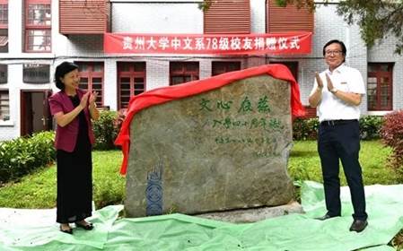 8月23日,中文系78级校友返校,并向母校捐赠“文心在兹”纪念石、校友成果资料和物品。省人大常委会原党组书记、副主任、贵州大学原党委书记龙超云等中文系78级校友代表58人,徐达、宋秀丽、张闻玉、房开江等十余位老教师代表参加了活动。