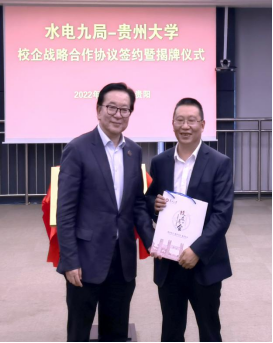 徐鹏程表示,贵州大学历史悠久、底蕴深厚、优势突出,为贵州省高质量发展提供了人才支撑和智力支持,感谢贵州大学在优势资源、深度技术、品牌文化、人才队伍等方面为水电九局提供的支持和帮助。本次校企合作是双方互利共赢、共同发展的愿望和结果,希望能充分用好双方资源、平台、优势,努力实现合作共赢,为双方高质量发展、打造现代化强企贡献力量。