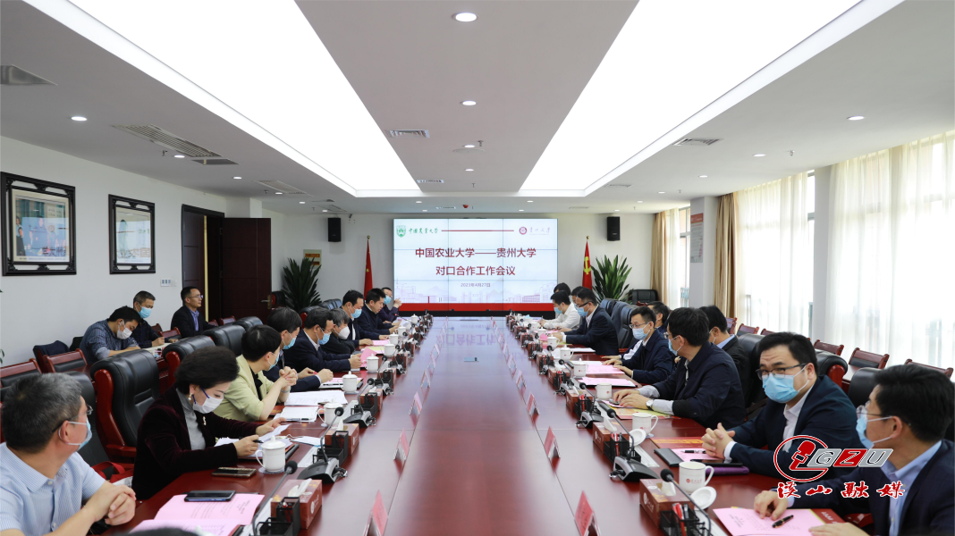 4月27日下午,中国农业大学—贵州大学对口合作工作会议在西校区贤正楼1号楼311会议室举行。中国农业大学党委书记钟登华院士、副校长田见晖,我校校长宋宝安院士出席会议,双方相关部门、学院负责人参加。我校副校长陈祥盛主持会议。