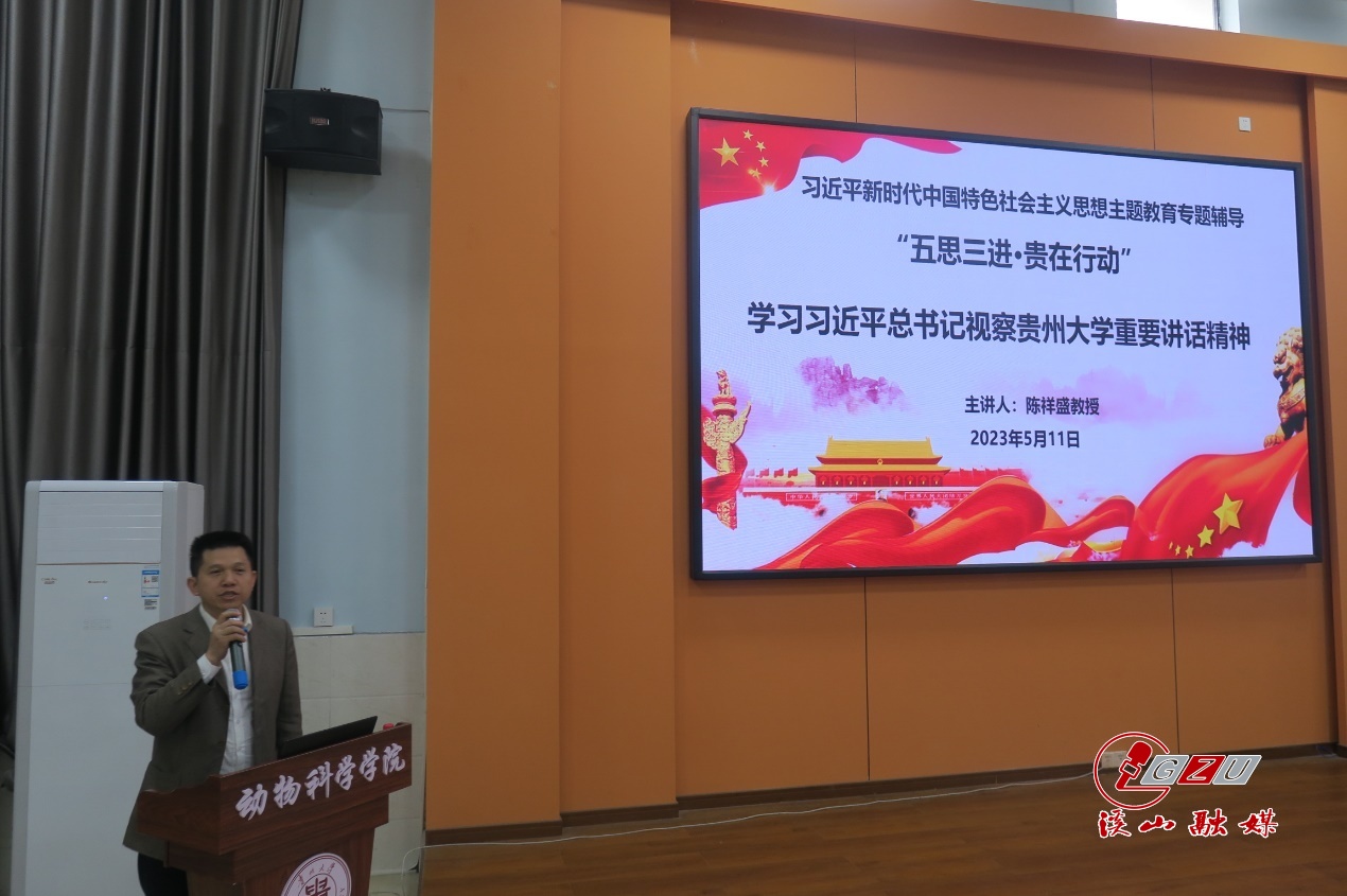 5月11日,副校长陈祥盛在崇学楼131报告厅为动物科学学院党员干部及入党积极分子讲授题为“‘五思三进·贵在行动’学习习近平总书记视察贵州大学重要讲话精神”的党课。动物科学学院党员干部及入党积极分子70余人参加。