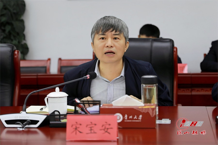 宋宝安对各位院士、专家和领导的到来表示热烈欢迎和衷心感谢。他简要介绍了贵州大学的历史、学科门类、师资队伍、人才培养等情况。宋宝安表示,近几年,贵州大学围绕高质量发展,在国家级人才引进、国家自然科学基金立项、国家重点实验室建设、科技成果奖项、校企产业深度合作等方面不断取得新的突破和成绩,学校整体办学实力进入西南高校前列,主要办学指标和综合实力进入全国百强名校行列;学校紧紧围绕“四新”主攻“四化”主战略和“四区一高地”主定位,注重培育发展特色优势学科,努力为贵州省高质量发展贡献贵大力量。学校发展仍存在不足和瓶颈,希望各位院士、专家多提宝贵意见,关心和支持贵州大学高质量发展,助推贵州大学为实现贵州高等教育事业发展和贵州经济社会发展作出新的更大贡献。