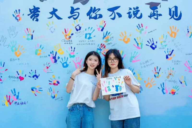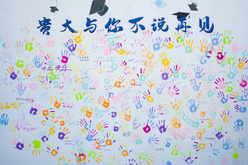 在贵州大学西校区阅湖广场上,一面宽大的墙上印满2023届毕业生的名字,吸引了众多学子纷纷前往打卡留念。东校区大礼堂还专门摆放了一面墙以供毕业生印上彩色手印,签写毕业寄语。现场人头攒动,热闹非凡,贵大以这种特别的方式为毕业生送上暖心祝福,也收获了学子们满满的感动和好评!