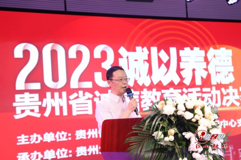 陈祥盛指出,为全面贯彻落实党的二十大精神,结合学习贯彻习近平新时代中国特色社会主义思想主题教育的深入开展,今年4月以来,省内各高校按照省教育厅等部门的工作要求,开展了以“诚以养德 信以铸人”为主题的系列诚信教育活动。贵州大学高度重视,精心准备,广泛参与,点面结合提升诚信教育成效,精心选拔优秀作品参赛。活动搭建了各高校在学生中开展诚信教育的交流学习平台,促进了诚信意识在广大学生中的入耳、入脑、入心。希望通过本次诚信教育主题活动的开展,在广大学生中根植诚实守信知行合一的人生信条,使高校国家助学贷款工作更加持续健康发展,使资助育人工作成效更加有力地体现在学校人才培养工作中。