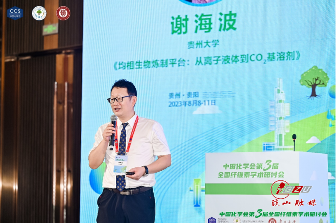 颁奖仪式结束后,孙润仓教授做了题为“木质纤维素生物质结构解译与多级联产工程化应用”的大会报告、蒋锡群教授做了题为“天然大分子的组装方法研究”的大会报告、严锋教授做了题为“聚离子液体凝胶”的大会报告、谢海波教授做了题为“均相生物炼制平台:从离子液体到CO2基溶剂”的大会报告,4位教授的大会报告为与会者提供了丰富的学术信息和启示,展示了纤维素相关领域的最新研究成果和发展趋势。